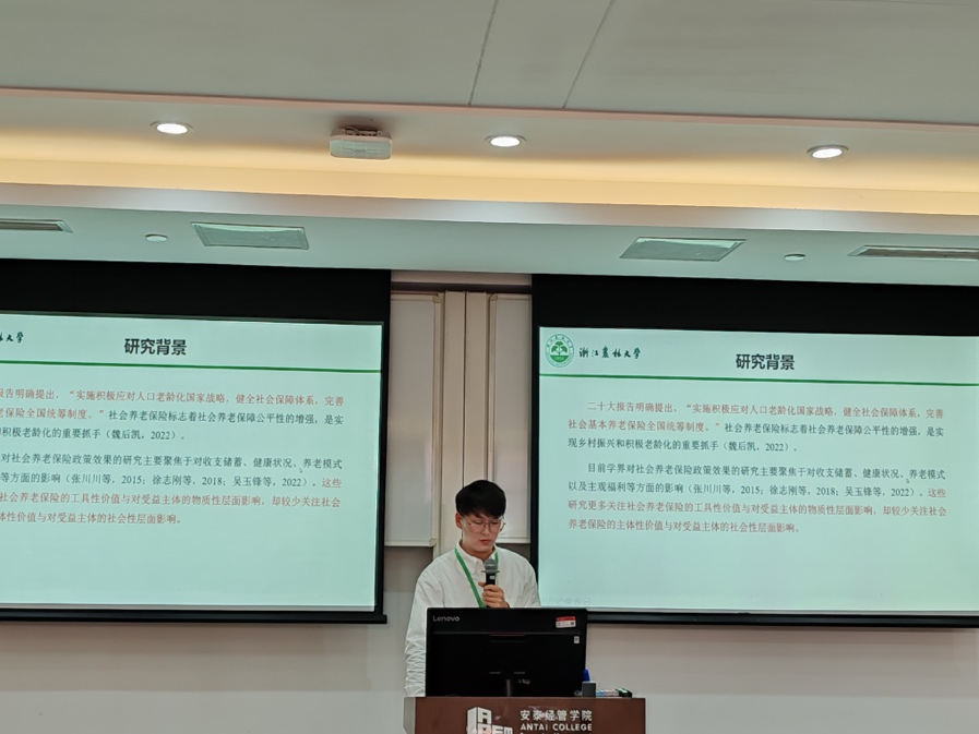 我校bv伟德国际19462021级农业管理硕士研究生吕良瑞和2023级农业经济管理硕士研究生许江帆分别就《社会养老保险对农村老年人社会适应的影响—基于中国老年社会追踪调查的实证研究》和《粮食安全背景下农业化学投入品减量的生态补偿标准研究—基于作物差异的分析》在“分论坛五:老龄化、教育与健康”和“分论坛四:绿色与低碳”分会场中进行主题演讲,其中许江帆同学担任分论坛下半场主持。本次论坛由院长助理杨建辉副教授带队,并在 “分论坛二:数字经济”分会场中担任点评专家。参加本次论坛,展现了我院的研究生研究水平,拓宽了研究生的学术视野,助推了研究生科研能力的培养,也加强了与兄弟院校研究生之间的沟通交流。