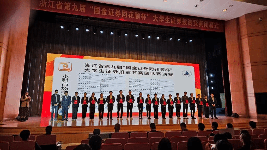 近日,“国金证券同花顺杯”第九届浙江省大学生证券投资竞赛顺利结束。我校学生在本次竞赛团队赛中喜获佳绩,共获得奖项10项,其中:一等奖6项、二等奖1项、三等奖3项。本竞赛是浙江省大学生科技竞赛委员会主办的省一类学科竞赛,由浙江省证券业协会、浙江省大学生证券投资竞赛委员会、浙江核新同花顺和相关高校等组织机构指导承办。全省高校本科共853支团队报名参赛,经过初赛、复赛、决赛环节,共评出346支获奖团队。