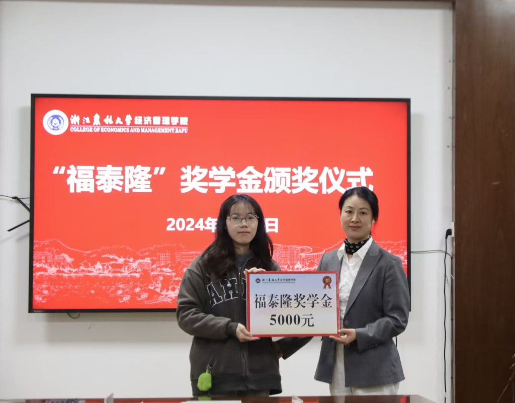据悉,“福泰隆”奖学金是由浙江福泰隆连锁超市有限公司出资,在bv伟德国际1946设立教育发展基金,并每年从基金中提取5万元作为福泰隆“”奖学金,用以奖励和表彰品学兼优的经管学子。