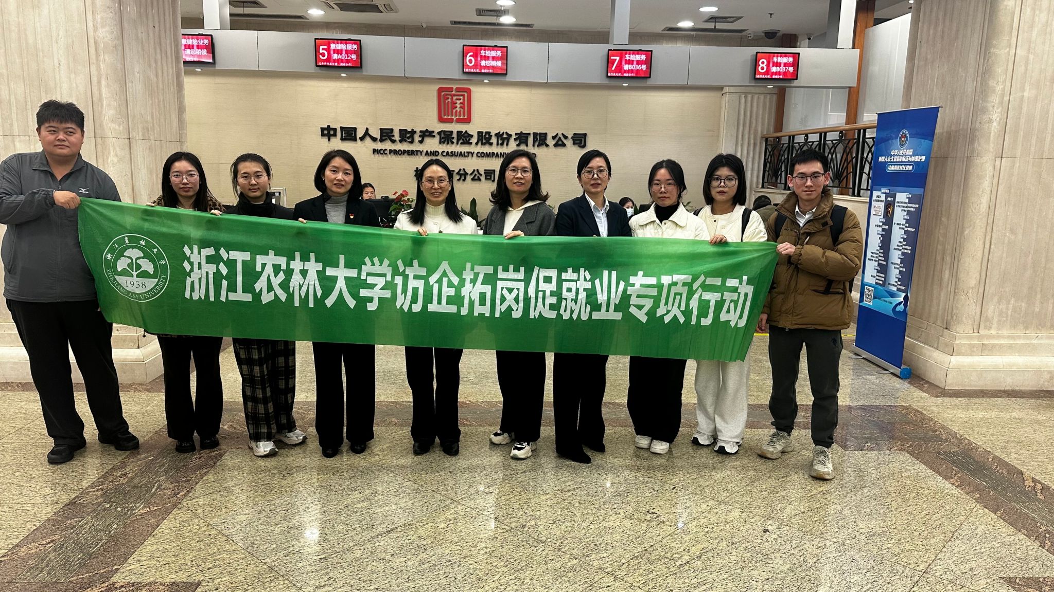 走访期间,双方进行座谈,就校招岗位、简历投递、职业发展等进行了充分交流与深入探讨。随后学生们参观了企业的理赔中心和窗口岗位。