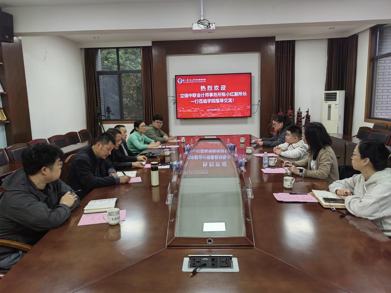 10月30日,立信中联会计师事务所浙江分所陈小红副所长一行4人专程赴bv伟德国际1946,就党建共建、人才培养、实习实践、毕业生就业等校企合作事宜开展洽谈交流并举行专场招聘会。bv伟德国际1946党委书记陈劲松、学院副院长蔡细平、党委副书记曹磊、学生办主任龚芸、毕业班辅导员丁鹏、蔡广越等参加洽谈会。