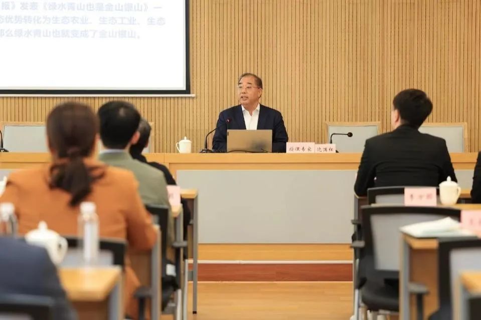 由中国科协主办,中国科协港澳台办公室、中国国际科技交流中心、浙江省科协承办的“2023年港澳青年科技人才国情研修活动”于2023年11月中旬先后浙江省温州市、嘉兴市、湖州市、杭州市举行。11月15日上午,沈满洪教授应邀到湖州市安吉县余村为学员做了题为“绿水青山就是金山银山理念的浙江萌发与生动实践”的专题宣讲。