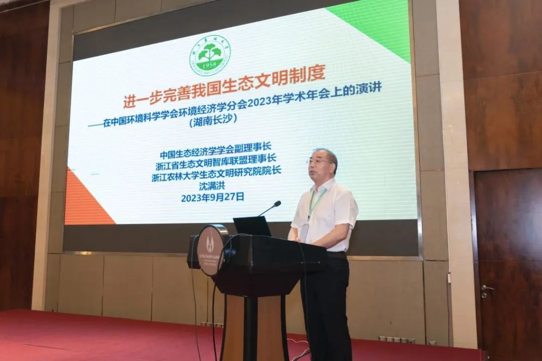 沈满洪教授参加中国环境科学学会环境经济学分会2023年年会并做主旨报告 9月27日,中国环境科学学会环境经济学分会年会在湖南省长沙市举行。本次年会以“加快构建支撑美丽中国建设的环境经济政策体系,建设人与自然和谐共生的现代化”为主题,约有150余人参会。会议由分会名誉主任委员、环境保护部环境规划院首席专家葛察忠研究员主持。分会主任委员、环境保护部环境规划院生态环境管理与政策研究所副所长(主持工作)董占峰教授,学院沈满洪教授,中国人民大学环境学院院长庞军教授,昆山杜克大学张...